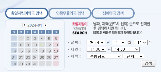 휴일지킴이 약국사이트 사용법