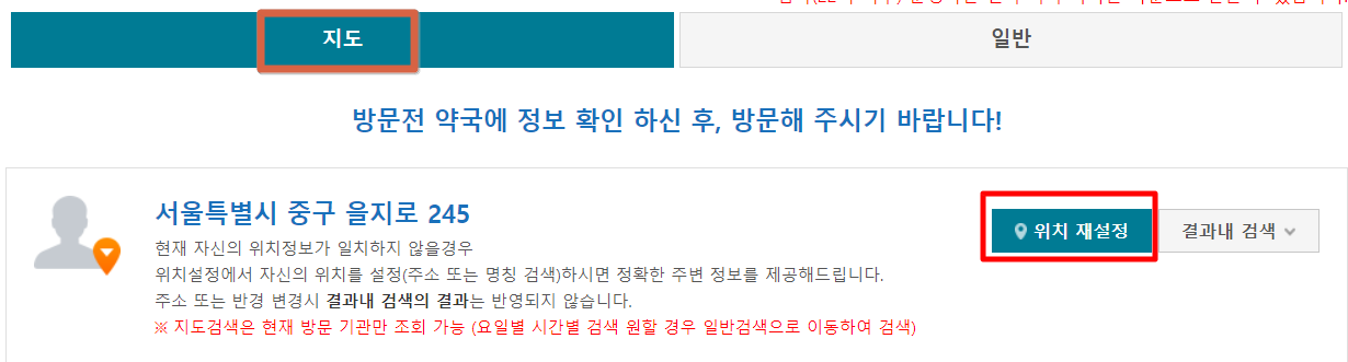 지역을 설정해서 집에서 가장 가까운 약국을 찾으시면 됩니다.